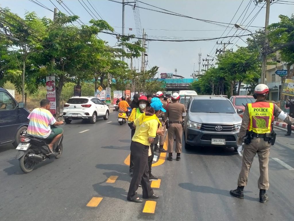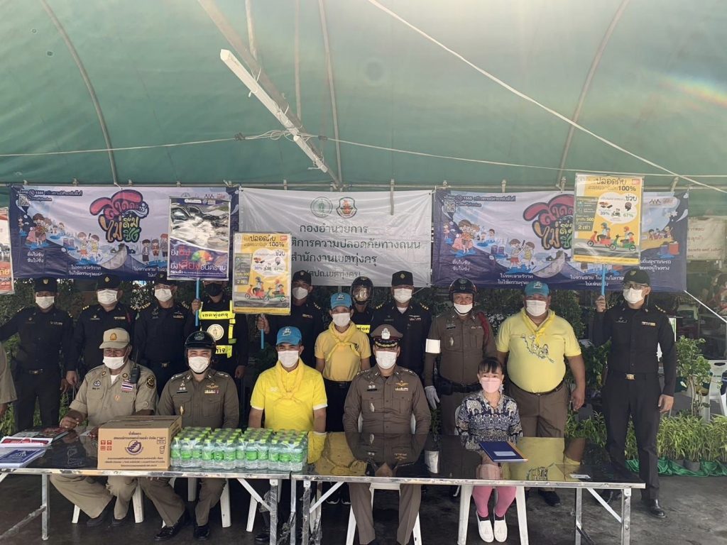 วันที่ 11 เม.ย.66 เวลา 10.00 น. พ.ต.อ.ธงชัย บัวรังษี ผกก.สน.ทุ่งครุ , พ.ต.ท.อาคม สยามนันทกุล รอง ผกก.ป.สน.ทุ่งครุ ,พ.ต.ท.ปฏิพัฒน์ ถาวรประพัฒน์ รอง ผกก.จร.สน.ทุ่งครุ,พ.ต.ต.สุมิตร นานนท์ สว.จร.สน.ทุ่งครุ, กต.ตร.สน.ทุ่งครุ เจ้าหน้าที่ตำรวจจราจร และตำรวจจิตอาสา อาสาสมัครตำรวจบ้านร่วมกับ สำนักงานเขตทุ่งครุ,เจ้าหน้าที่สาธารณสุข 59 จัดกิจกรรมจิตอาสาจราจร “สงกรานต์สุขใจ ขับขี่ปลอดภัย”ในช่วงเทศกาลสงกรานต์ ประจำปี 2566 ขับขี่วิถีใหม่ ปลอดภัย ไร้อุบัติเหตุ เมาไม่ขับ สวมหมวกกันน็อก ล็อกความปลอดภัย หยุดรถให้คนข้าม ในเขตทางข้าม บริเวณจุดบริการประชาชน ถนนประชาอุทิศ หน้าตลาดทิพย์พลาซ่า แขวงทุ่งครุ เขตทุ่งครุ กทม.