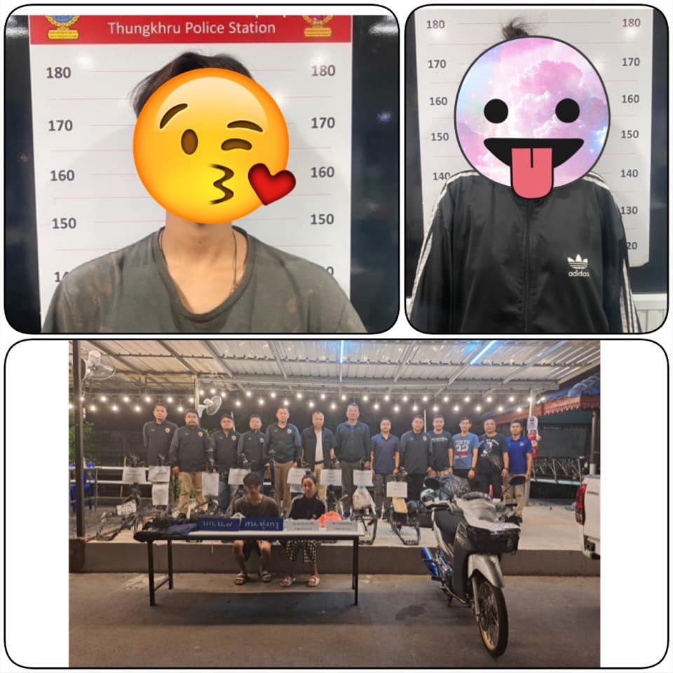 6.พฤติการณ์ที่เกิดเหตุ กล่าวคือ วันนี้ 30 ม.ค. 2567 น.เจ้าพนักงานตำรวจชุดจับกุม ได้รับการประสานงานผู้แจ้งนายอรรถพล ศรีบุปผา ได้มาแจ้งความร้องทุกข์กับพนักงานสอบสวนสภ. พระสมุทรเจดีย์ว่าถูกคนร้ายไม่ทราบว่าเป็นผู้ใดลักเอารถจักรยานยนต์ยี่ห้อฮอนด้าเวฟ 125 ไอสีขาวทะเบียน8กม4602 กทม ผู้แจ้งจอดไว้บริเวณบ้านเลขที่ 20 / 74 ซอยร่มเย็นพื้นที่สภ. พระสมุทรเจดีย์ต่อมาเจ้าหน้าที่ตำรวจฝ่ายสืบสวนได้ติดตามกล้องวงจรปิดผู้ก่อเหตุมาตลอดเส้นทางพบว่าคนร้าย จำนวนสองคนลักเอารถจักรยานยนต์คันดังกล่าวไปเวลาต่อมาได้ติดตามมาถึงบ้านเลขที่ 243 / 3 ซอยประชาอุทิศ 76 แขวงเขตทุ่งครุกรุงเทพฯพบผู้ก่อเหตุเป็นชายชายหนึ่งคนผู้ต้องหาที่หนึ่งและหญิงอีกหนึ่งคนผู้ต้องหาที่สองลักษณะคล้ายผู้ก่อเหตุปรากฏตัวอยู่บริเวณบ้านเลขที่ 243 / 3 ซอยประชาอุทิศ 76 แขวงเขตทุ่งครุกรุงเทพฯจึงได้ประสานเจ้าที่ตำรวจฝ่ายสืบสวนสน. ทุ่งครุร่วมกันตรวจสอบของกลางพบของกลางที่ถูกลักทรัพย์มาเป็นรถจักรยานยนต์ระบุทะเบียนเลขเครื่องตรงตามที่ได้รับแจ้งเจ้าที่ฝ่ายสืบสวนสน. ทุ่งครุสภ. พระสมุทรเจดีย์สภ. บ้านคลองสวนจึงได้ร่วมกันตรวจค้นจับกลุ่มผู้ต้องหาทั้งสองรายพร้อมของกลาง และได้ตรวจยึดโครงรถจำนวนหนึ่งไว้ที่สน. ทุ่งครุเพื่อตรวจสอบการโจรกรรมจากพื้นที่อื่นต่อไป เจ้าพนักงานตำรวจชุดจับกุมจึงแจ้งข้อกล่าวหาพร้อมสิทธิ ณ ที่จับกุมให้ผู้ถูกจับทราบ นำตัวผู้ถูกจับส่งพนักงงานสอบสวนเพื่อดำเนินคดีต่อไป