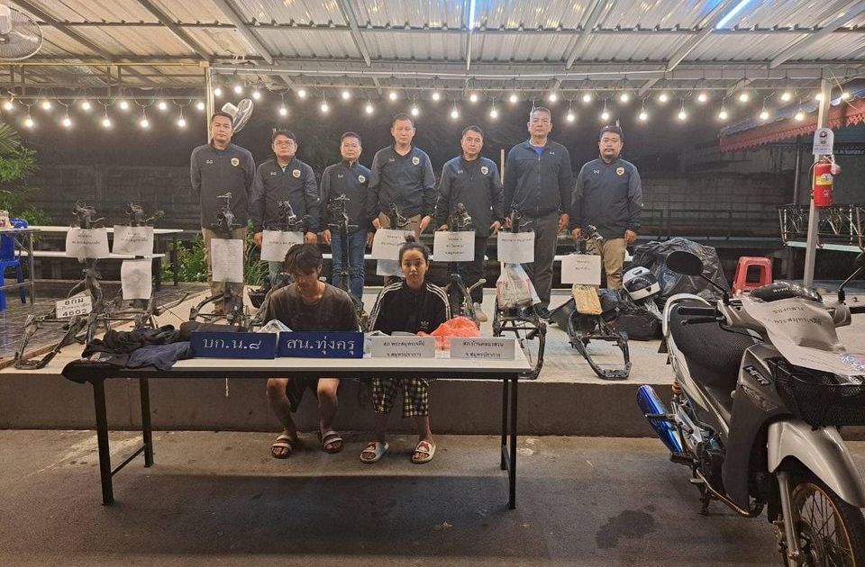 6.พฤติการณ์ที่เกิดเหตุ กล่าวคือ วันนี้ 30 ม.ค. 2567 น.เจ้าพนักงานตำรวจชุดจับกุม ได้รับการประสานงานผู้แจ้งนายอรรถพล ศรีบุปผา ได้มาแจ้งความร้องทุกข์กับพนักงานสอบสวนสภ. พระสมุทรเจดีย์ว่าถูกคนร้ายไม่ทราบว่าเป็นผู้ใดลักเอารถจักรยานยนต์ยี่ห้อฮอนด้าเวฟ 125 ไอสีขาวทะเบียน8กม4602 กทม ผู้แจ้งจอดไว้บริเวณบ้านเลขที่ 20 / 74 ซอยร่มเย็นพื้นที่สภ. พระสมุทรเจดีย์ต่อมาเจ้าหน้าที่ตำรวจฝ่ายสืบสวนได้ติดตามกล้องวงจรปิดผู้ก่อเหตุมาตลอดเส้นทางพบว่าคนร้าย จำนวนสองคนลักเอารถจักรยานยนต์คันดังกล่าวไปเวลาต่อมาได้ติดตามมาถึงบ้านเลขที่ 243 / 3 ซอยประชาอุทิศ 76 แขวงเขตทุ่งครุกรุงเทพฯพบผู้ก่อเหตุเป็นชายชายหนึ่งคนผู้ต้องหาที่หนึ่งและหญิงอีกหนึ่งคนผู้ต้องหาที่สองลักษณะคล้ายผู้ก่อเหตุปรากฏตัวอยู่บริเวณบ้านเลขที่ 243 / 3 ซอยประชาอุทิศ 76 แขวงเขตทุ่งครุกรุงเทพฯจึงได้ประสานเจ้าที่ตำรวจฝ่ายสืบสวนสน. ทุ่งครุร่วมกันตรวจสอบของกลางพบของกลางที่ถูกลักทรัพย์มาเป็นรถจักรยานยนต์ระบุทะเบียนเลขเครื่องตรงตามที่ได้รับแจ้งเจ้าที่ฝ่ายสืบสวนสน. ทุ่งครุสภ. พระสมุทรเจดีย์สภ. บ้านคลองสวนจึงได้ร่วมกันตรวจค้นจับกลุ่มผู้ต้องหาทั้งสองรายพร้อมของกลาง และได้ตรวจยึดโครงรถจำนวนหนึ่งไว้ที่สน. ทุ่งครุเพื่อตรวจสอบการโจรกรรมจากพื้นที่อื่นต่อไป เจ้าพนักงานตำรวจชุดจับกุมจึงแจ้งข้อกล่าวหาพร้อมสิทธิ ณ ที่จับกุมให้ผู้ถูกจับทราบ นำตัวผู้ถูกจับส่งพนักงงานสอบสวนเพื่อดำเนินคดีต่อไป