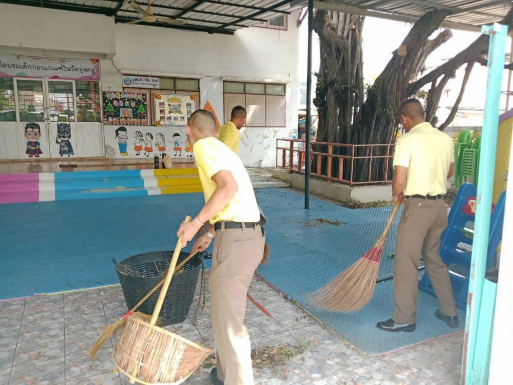 (วันที่ 14 มี.ค.68 ) เวลา 10.00 น. พ.ต.อ.จุมพล สินศิริพงษ์ ผกก.สน.ทุ่งครุ ,พ.ต.ท.อาคม สยามนันทกุล รอง ผกก.ป.สน.ทุ่งครุ, มอบหมายให้,พ.ต.ต.พิศ พวงประทุม สวป.(ชส.)สน.ทุ่งครุ พร้อมเจ้าหน้าที่ตำรวจจิตอาสา สน.ทุ่งครุ นสต.ฝึกงาน จัดกิจกรรมจิตอาสาพัฒนา ทำความสะอาด และตัดแต่งกิ่งไม้ อาคารศุนย์เด็กเล็กและลานกีฬา ชุมชนหมู่ 5 ทุ่งครุ แขวง/เขตทุ่งครุ กทม.