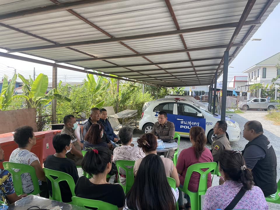 วันที่ 1 ก.พ. 67 เวลา 13.30 น. พ.ต.อ.จุมพล สินศิริพงษ์ ผกก.สน.ทุ่งครุพ.ต.ท.อาคม สยามนันทกุลรอง ผกก.ป.สน.ทุ่งครุพ.ต.ต.พิศ พวงประทุมสวป.(ชส.) สน.ทุ่งครุ พร้อม เจ้าหน้าที่ตำรวจชุมชนสัมพันธ์เจ้าหน้าที่ฝ่ายสืบสวนพบปะตรวจเยี่ยมประธานชุมชน นางจำรัส เหมือนโพธิ์ทอง ประธานชุมชนฯ พร้อมคณะกรรมการชุมชนฯ ชุมชนหมู่ 5 หลังวัดทุ่งครุเพื่อแสวงหาความร่วมมือกับประชาชนในชุมชนโดยได้พูดคุยรับฟังปัญหาและอุปสรรคความต้องการและแนวทางการดำเนินการงานชุมชนยั่งยืนเพื่อแก้ไขปัญหายาเสพติดแบบครบวงจร ตามยุทธศาสตร์ชาติ ปีงบประมาณ 2567และแก้ไขปัญหาต่างๆ ของพื้นที่ พร้อมทั้งประชาสัมพันธ์โครงการต่างๆของ สน.ทุ่งครุและอาชญากรรมทางเทคโนโลยีกลโกงในรูปแบบต่างๆให้ประชาชนทราบ ณ ชุมชนหมู่ 5 หลังวัดทุ่งครุ แขวงทุ่งครุเขตทุ่งครุ กทม