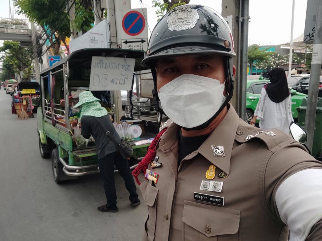วันที่ 8 มี.ค. 65 เวลา 13.45 น. ร.ต.อ.วิชชาภพ กาวสูงเนิน รอง สว.จร.สน.ทุ่งครุ 660-3 ประชาสัมพันธ์รถยนต์ ที่จอดรถขายผลไม้และจอดกีดขวางการจราจร บริเวณหน้าห้างโลตัส และห้าง แม็ก วาลูว์ ถนนประชาอุทิศ แจ้งให้ผู้ค้าและผู้ที่ซื้อสินค้าให้ทราบถึงความผิดและห้ามมิให้กระทำอีกต่อไปและให้เคลื่อนย้ายพ้นกีดขวางเรียบร้อย”;