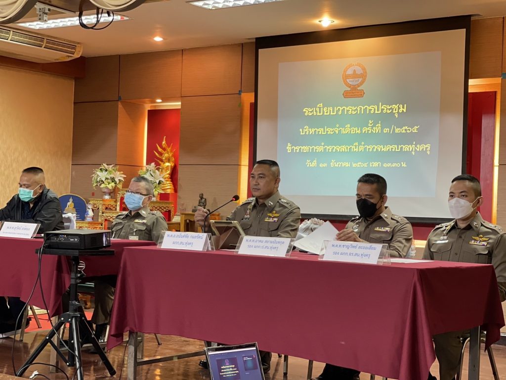 วันที่ 13 ธันวาคม 2564 พ.ต.อ.อนันต์ชัย กมลรัตน์ ผกก.สน.ทุ่งครุ ประชุมบริหารและมอบหมายนโยบายการปฏิบัติหน้าที่ให้ข้าราชการตำรวจ สน.ทุ่งครุ ณ ห้องประชุม 1 รร.วัดทุ่งครุ (พึ่งสายอนุสรณ์)