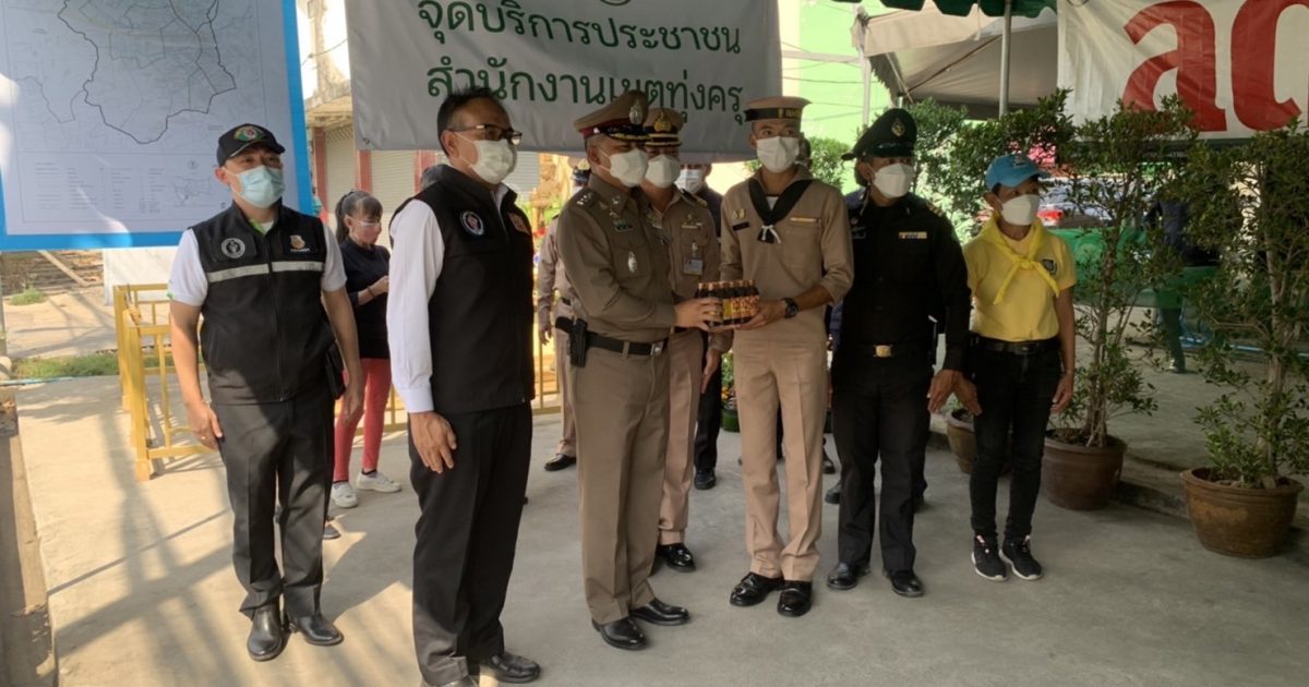 วันที่ 30 ธันวาคม 2564 เวลา 14.00 น. พ.ต.อ.อนันต์ชัย กมลรัตน์ ผกก.สน.ทุ่งครุ พร้อมข้าราชการตำรวจ สน.ทุ่งครุ ร่วมกับ สำนักงานเขตทุ่งครุ เจ้าหน้าที่ทหาร จิตอาสา อาสาสมัครภาคประชาชน ร่วมกันเปิดจุดบริการประชาชน ช่วงเทศกาลปีใหม่2565 บริเวณหน้าตลาดทิพย์พลาซ่า ถ.ประชาอุทิศ แขวง/เขตทุ่งครุ กทม.ุ”;