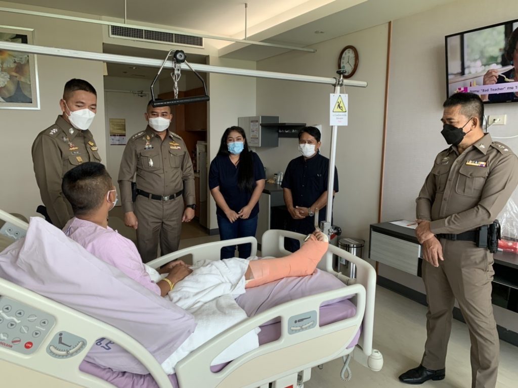 วันพุธที่ 24 สิงหาคม 2565 เวลา 12.00 น.พ.ต.อ.โฆษิต บุญทวี รองผบก.น.8, พ.ต.อ.อนันต์ชัย กมลรัตน์ ผกก.สน.ทุ่งครุ, พ.ต.ท.อาคม สยามนันทกุล รองผกก.สน.ทุ่งครุพร้อม ประธาน กต.ตร.สน.ทุ่งครุ นายกฤษดา ทอนสูงเนิน เข้าเยี่ยมให้กำลังใจ จ.ส.ต.ศราวุฒิ ชนนรินทร์ และส.ต.ท.วงศธร แสงเงิน จนท.ตร.สายตรวจ สน.ทุ่งครุ ซึ่งประสบอุบัติเหตุได้รับบาดเจ็บเนื่องจากการปฏิบัติหน้าที่ เข้ารักษาตัวอยู่ที่โรงพยาบาลตำรวจ ตึก มภร. ชั้น 11 ห้อง 1120 ,1121″;