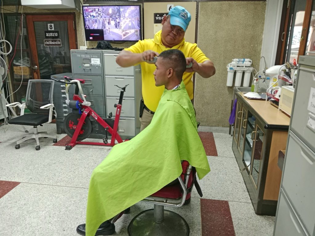 พร้อมเจ้าหน้าที่ตำรวจจิตอาสาจัดกิจกรรมจิตอาสา ตัดผมฟรี ให้แก่ข้าราชการตำรวจและครอบครัว ณ ห้องตัดผมสวัสดิการ สน.ทุ่งครุ แขวง/เขตทุ่งครุ กทม.