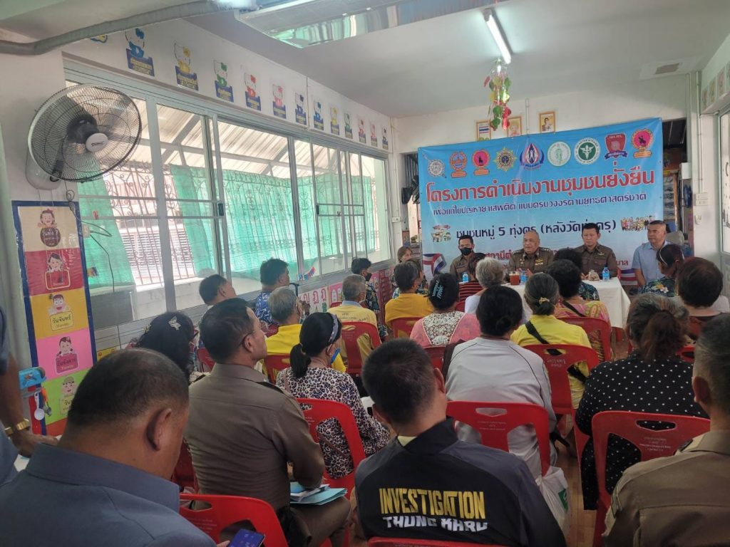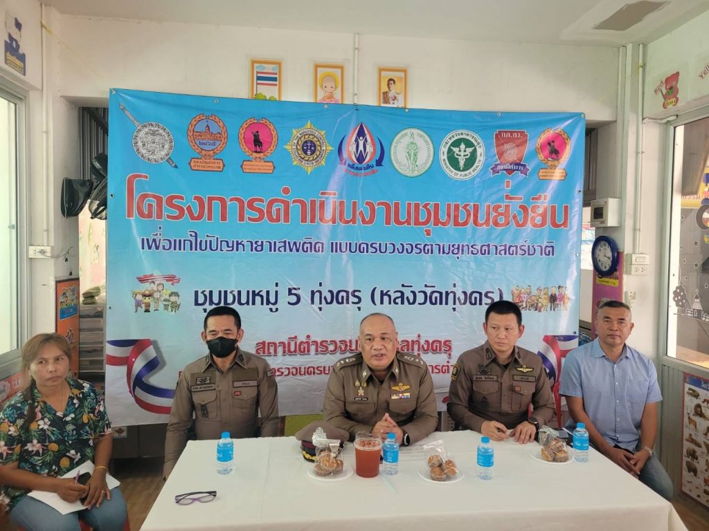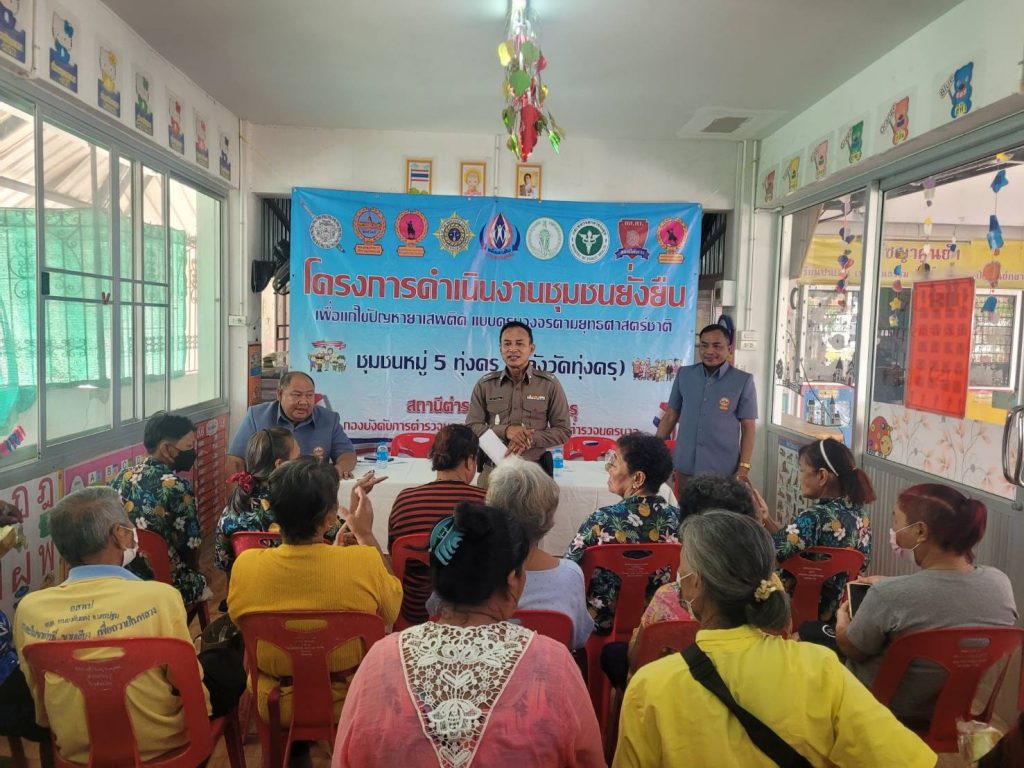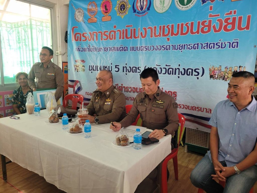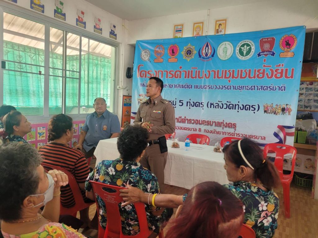 วันที่ 4 มี.ค.67 เวลา 14.00 น.พ.ต.อ.บุญส่งวิทย์ ห้องแซง รอง ผบก.น.8 (ปส.) พร้อมด้วย พ.ต.อ.จุมพล สินศิริพงษ์ ผกก.สน.ทุ่งครุพ.ต.ท.อาคม สยามนันทกุล รอง ผกก.ป.สน.ทุ่งครุ พ.ต.ท.อนุพงษ์ อรุณคีรีโรจน์ รอง ผกก.สส.สน.ทุ่งครุ พ.ต.ต.ทวี จัดสนามสว.สส.สน.ทุ่งครุ พ.ต.ต.ไพรัตน์ ภู่ระหงษ์ สวป.สน.ทุ่งครุ พ.ต.ต.พิศ พวงประทุม สวป.ชส.สน.ทุ่งครุ พร้อมด้วยเจ้าหน้า ตชส.สน.ทุ่งครุ เจ้าหน้าที่ ฝ่ายป้องกันปราบปราม เจ้าหน้าที่ฝ่ายสืบสวน สน.ทุ่งครุ และเจ้าหน้าที่ ศอ.ปส.บก.น.8 ร่วมกับผู้นำชุมชน หมู่ 5 หลังวัดทุ่งครุ กรรมการชุมชนฯ ประชาชนชุมชนฯ รับการตรวจเยี่ยมและรับฟังปัญหาของยาเสพติด ในชุมชนฯเพื่อดำเนินการตามโครงการชุมชนยั่งยืน งบประมาณ 2567 ณ ห้องประชุมศูนย์เด็กก่อนวัย วัดทุ่งครุ