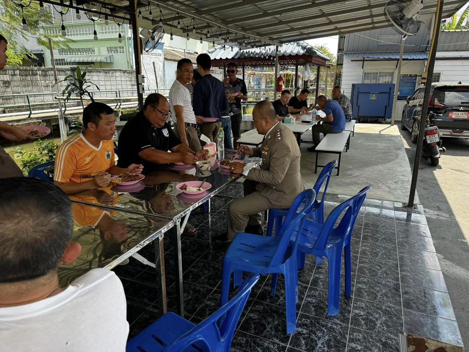 วันนี้ (5 ก.พ.67) เวลา 12.00 น. พ.ต.อ.จุมพล สินศิริพงษ์ ผกก.สน.ทุ่งครุ พร้อมด้วย รอง ผกก.(สอบสวน)/หน.ฯ , รอง ผกก.ป.ฯ , รอง ผกก.สส.ฯ , รอง ผกก.(สอบสวน)ฯ , สว.จร.ฯ , สว.(สอบสวน)/หน.งานคดีฯ , สว.อก.ฯ และ สวป.(ชส.)ฯ ร่วมรับประทานอาหารกลางวัน พร้อมข้าราชการตำรวจ สน.ทุ่งครุ ณ ศาลาริมคลอง หลัง สน.ทุ่งครุ