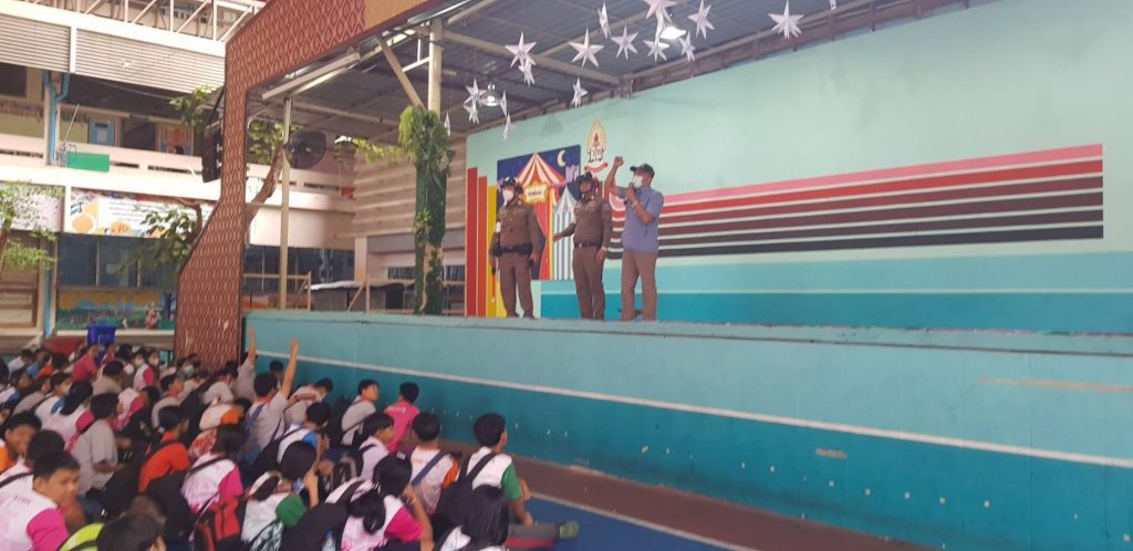 วันที่ 24 มกราคม 2567 เวลา 08.00 น.ภายใต้การอำนวยการของ พ.ต.อ.จุมพล สินศิริพงษ์ ผกก.สน.ทุ่งครุ,พ.ต.ท.อาคม สยามนันทกุล รองผกก.ป.สน.ทุ่งครุมอบหมายให้ พ.ต.ท.สุมิตร นานนท์ สว.จร.,พ.ต.ต.พิศ พวงประทุม สวป.(ชส.),ร.ต.ท.บรรเทิง วรรณทอง รองสว.(ป.),ร.ต.ต.ธนชาติ พลรัตน์ รองสว.(จร.)สน.ทุ่งครุ อบรมให้ความรู้เรื่อง”กฎจราจรและการขับขี่อย่างปลอดภัย”แก่นักเรียนชั้นประถมศึกษาปีที่1-6มัธยมศึกษาปีที่1-3โรงเรียนวัดทุ่งครุ(พึ่งสายอนุสรณ์) จำนวน 2,200 คนตามโครงการ “5นาทีหน้าเสาธง”