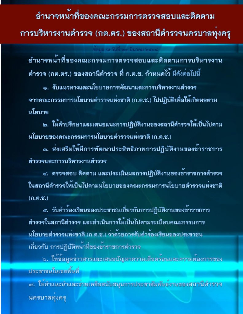 รายชื่อคณะกรรมการตรวจสอบและติดตามการบริหารงานตำรวจ สน.ทุ่งครุ